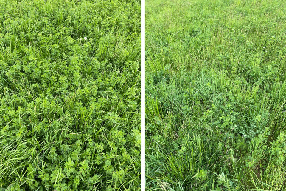 Rechts wüchsiger und links kleemüder Bestand